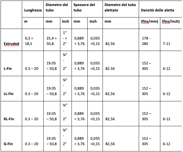 | G-Fin | 0.3 – 20 | 19.05 – 50,8 | 3/4” - > 2” | 0,889 ÷ 3,76 | 0,035 ÷ 0,15 | 82.56 | 152 – 305 | 6-12 |